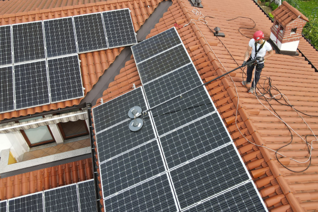 Zelo pomemben del vzdrževanja sončne elektrarne je njeno čiščenje, ki se priporoča na vsaki 2 leti. S tem ne povečate samo proizvodnje energije, temveč tudi pravočasno zaznate morebitne poškodbe.